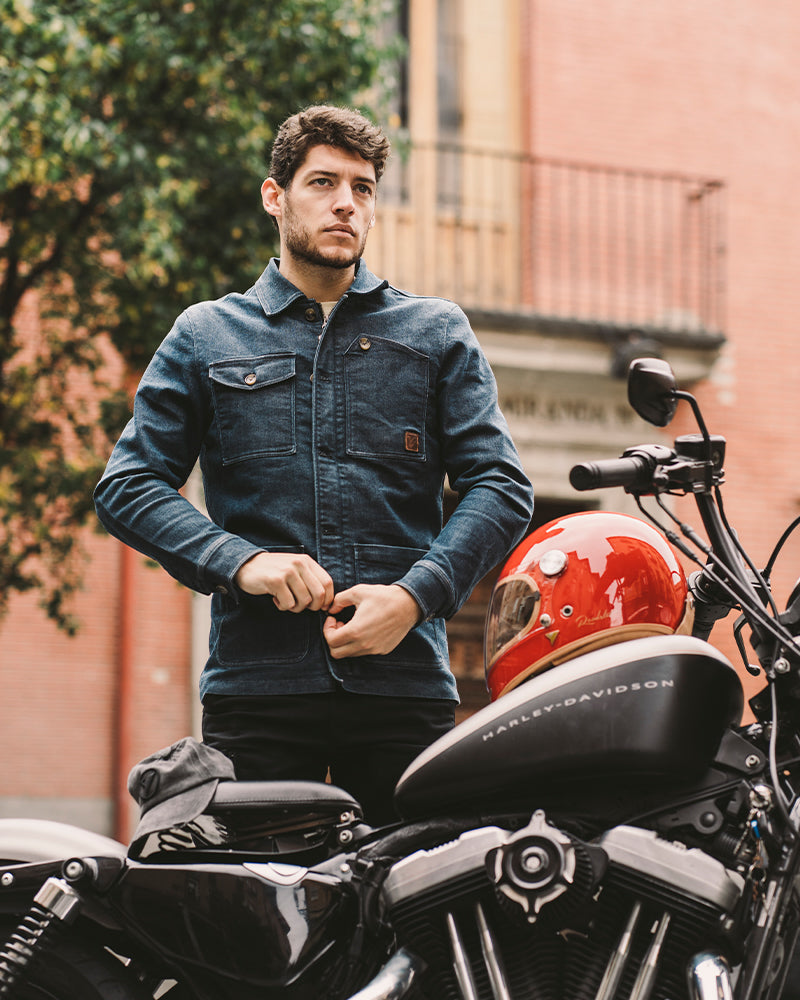 The stylish By City 'Wheel' Motorcycle Jacket is crafted from premium cotton denim and utilizing advanced coated yarn technology.