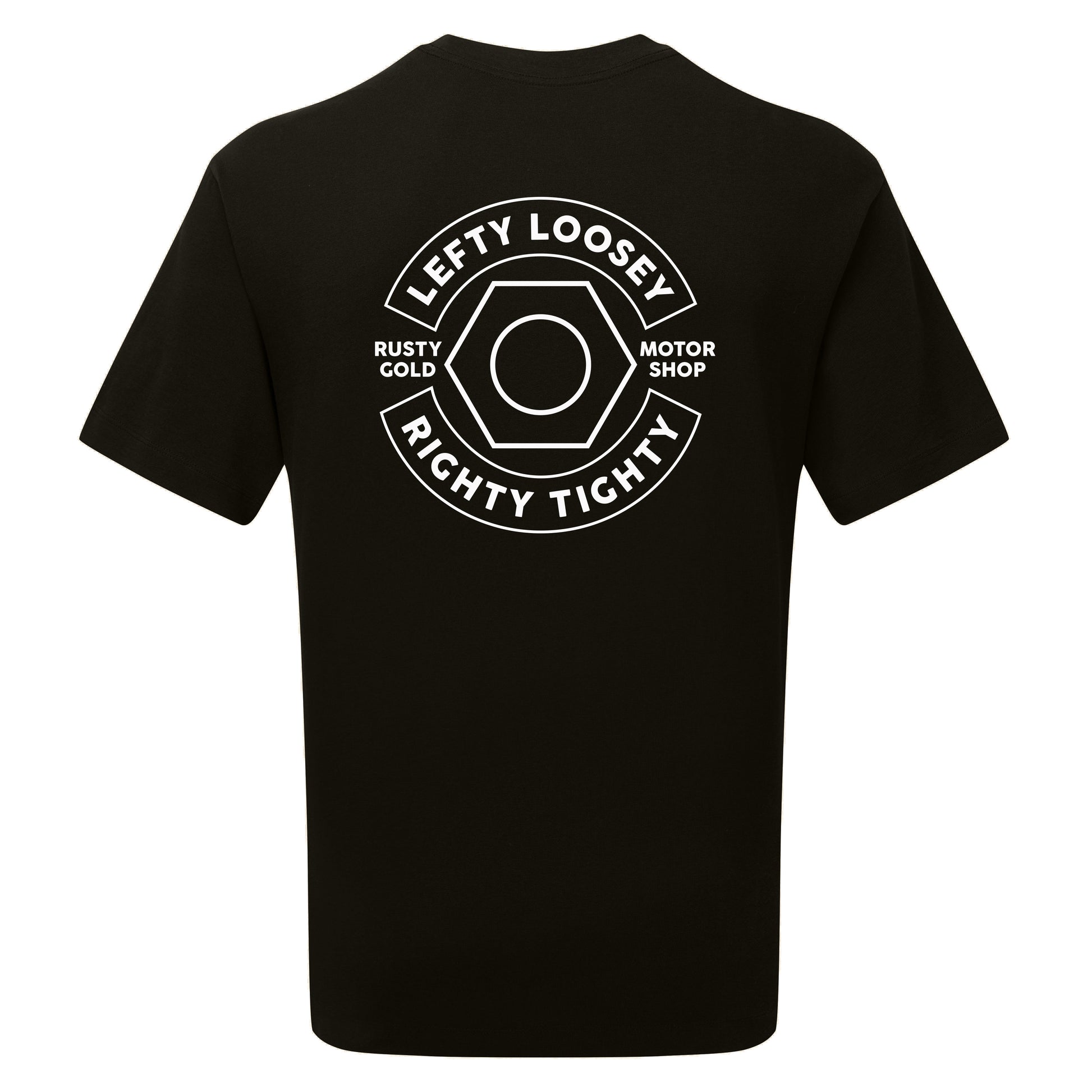 We captured this mnemonic in a bold Rusty Gold graphic and back-printed it with white vintage feeling felt material on a pitch black tee. A subtle little bolt on the chest is the chery on the cake..