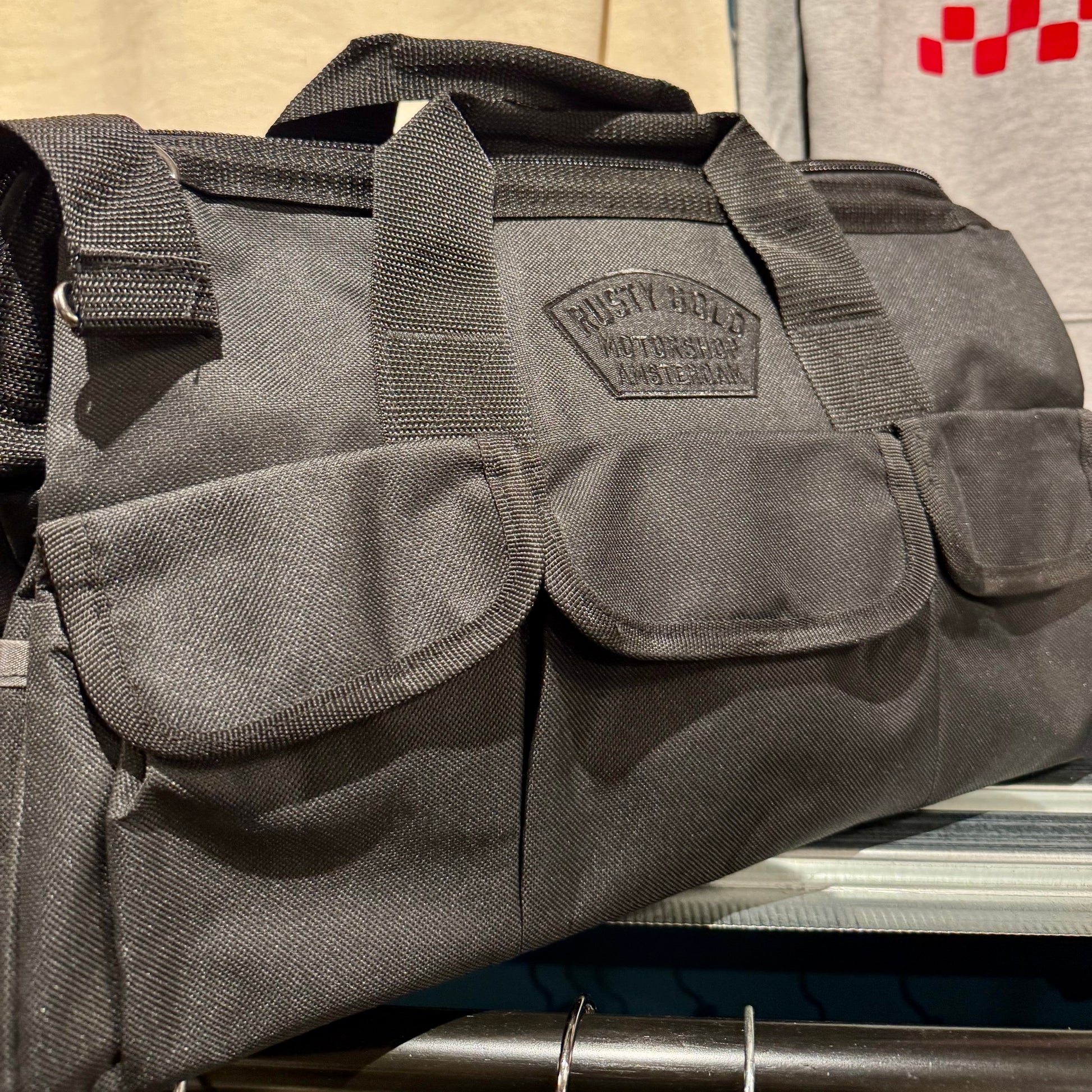 The Rusty Gold 16” multi-pocket tool bag is the perfect companion for wrenching adventures.
