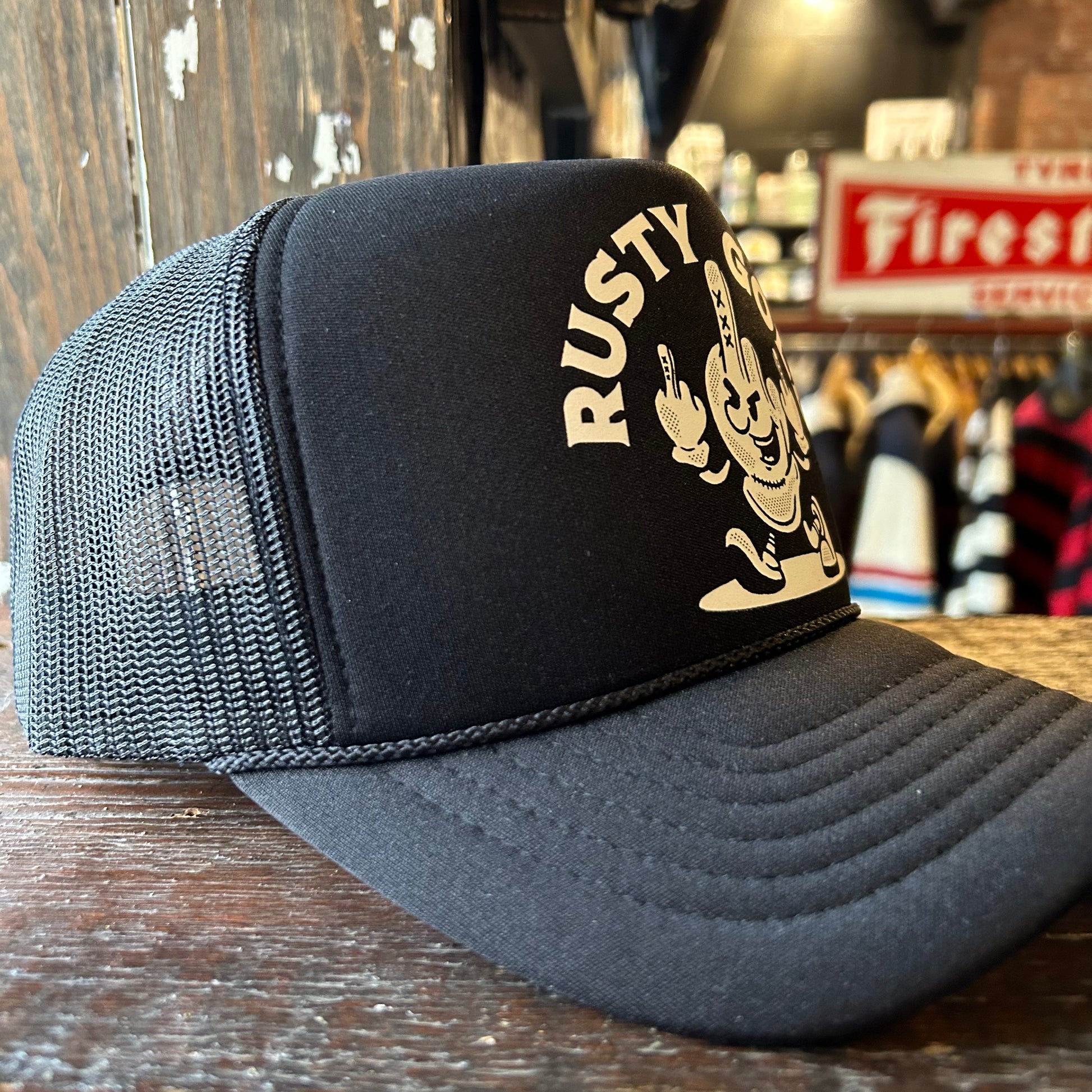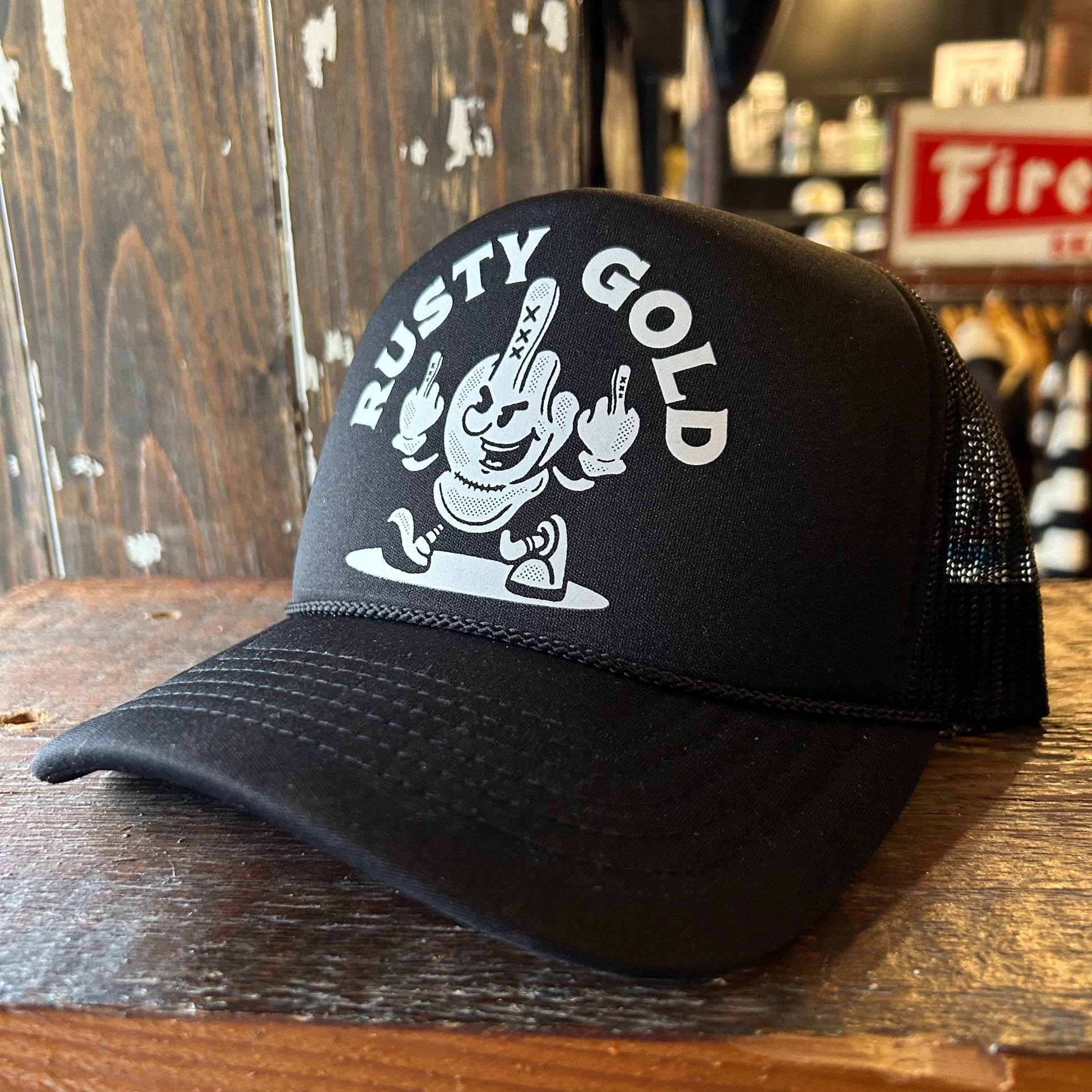New in store! The Rusty Gold Tough Glove mascotte trucker hat!