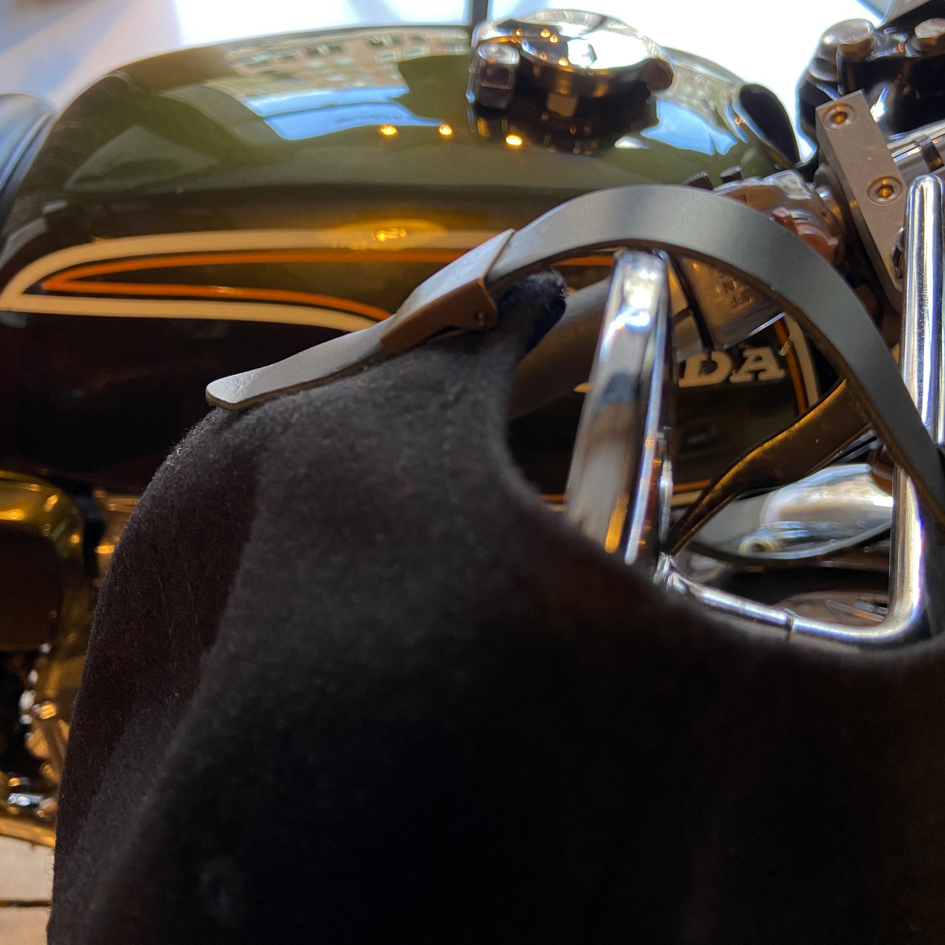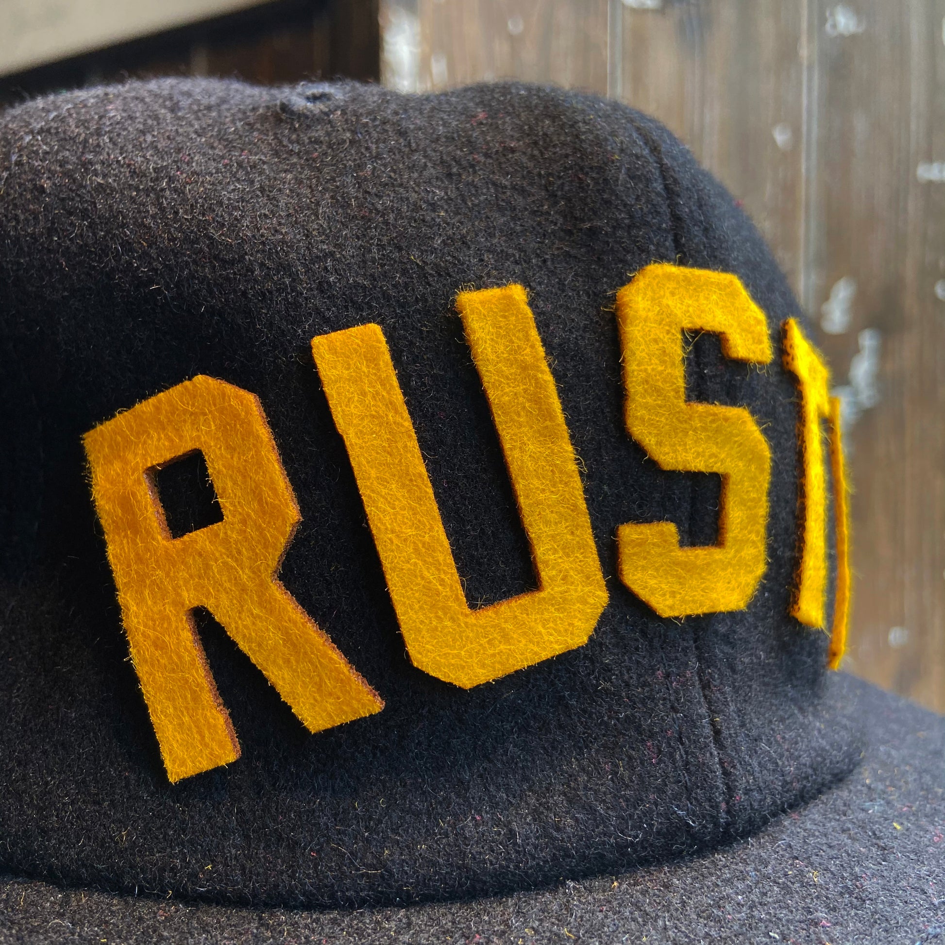 We used a superb quality Melton wool hat with a classic unstructured fit and look. The letters were hand cut (in house) from real wool felt. The same material used on racing team jerseys back in the days.